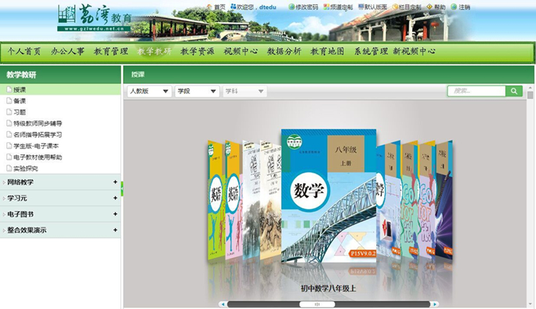 从2013年开始,广州市荔湾区建设“数字化教材”资源平台,现已覆盖小学一年级至高中三年级全部人教版的93册教材,涵盖语文、数学、英语、物理、化学、生物、地理、历史、政治9个学科,融合了100384个多媒体资源。目前共有70多册“数字化教材”投入使用。